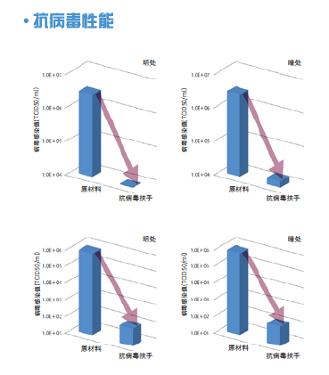 NAKA扶手抗病毒性:8小時能達到99%以上的抗病毒效果:原來的樹脂扶手與抗病毒配方的樹脂扶手在亮的地方與暗的地方分開進行了測試。隨著時間推移,抗病毒配方的樹脂扶手有了明顯的效果,8小時后觀測出了99%以上的抗病毒效果。根據(jù)安裝場所及使用條件,其結果是不同的,使用抗病毒扶手,降低了傳染病的風險,可作為維持衛(wèi)生清潔環(huán)境的產品所使用。如圖三
